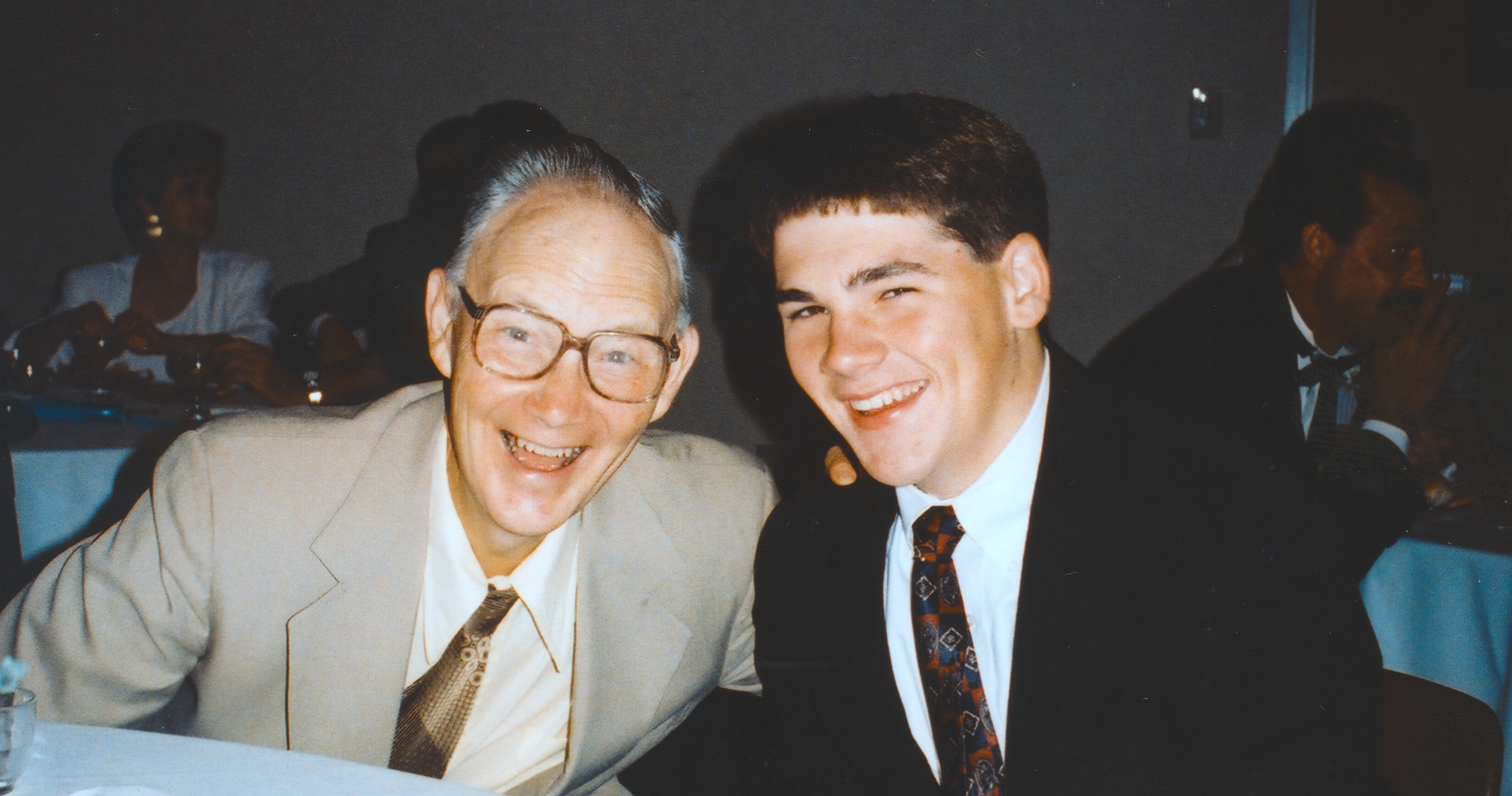 Daddy showing his exuberant personality with my son (and his grandson) Justin in 1996.
