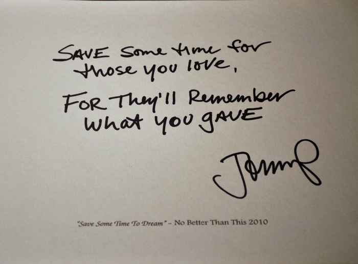 John Mellencamp’s handwritten encouragement from his song “Save Some Time to Dream”. Download from forum.mellencamp.com