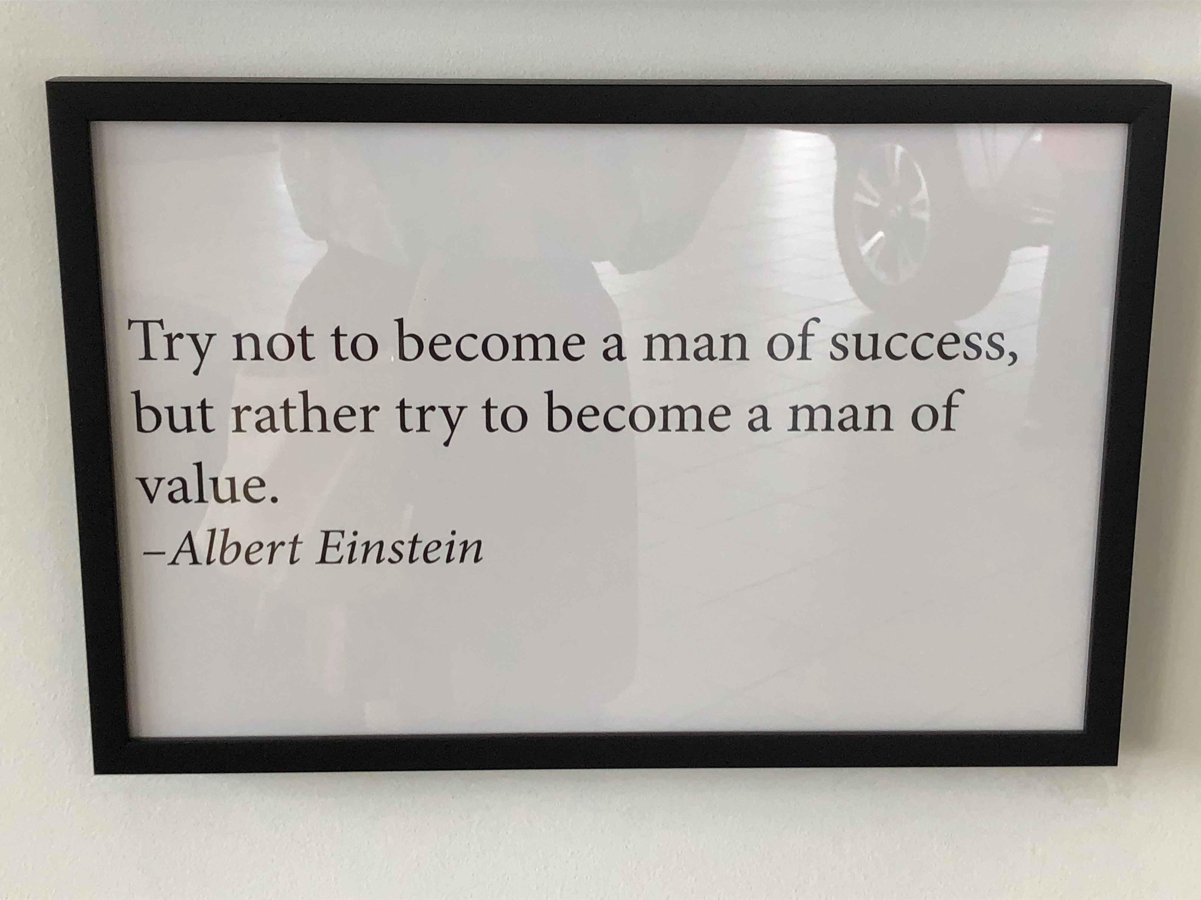Kurt and I were at a car dealership this weekend for a test drive to replace my 11- year-old Honda Accord. To my surprise, this dealership, Toyota of Knoxville, has quotes from politicians, scientist, and writers framed on their wall. Many of them speak directly to our times–and to all times–but this one reminded me of Daddy.
