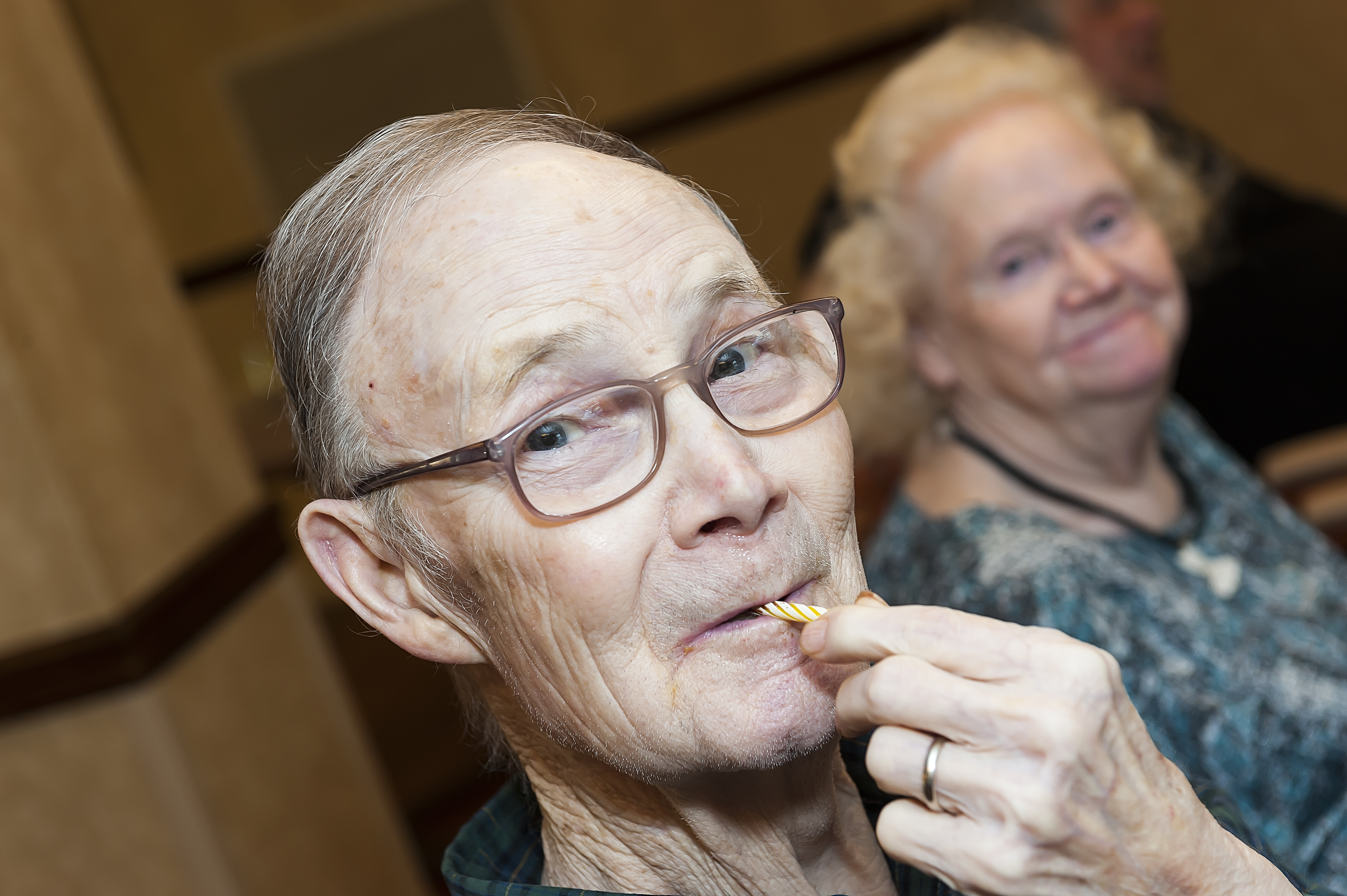 At dinner last night Kurt and I were talking about Daddy‘s last Thanksgiving. Daddy had broken his hip and was in a rehabilitation center trying to regain his strength. We got permission to bring Thanksgiving lunch to him in the rehabilitation center’s cafeteria which was quiet and abandoned from its usual clatter of activity because the staff were away sharing Thanksgiving with their families. Daddy had bedsores and was in a good deal of pain, but the rehab folks had given him a shot so when he came downstairs in his wheelchair he seemed strong and very happy. In addition to a turkery and all the trimmings, we brought a birthday cake for Tracy, Justin’s wife, since we were celebrating her birthday as well as Thanksgiving. We all laughed as daddy ate the icing off the bottom of the birthday candles. It was such an ever-so-daddy moment!