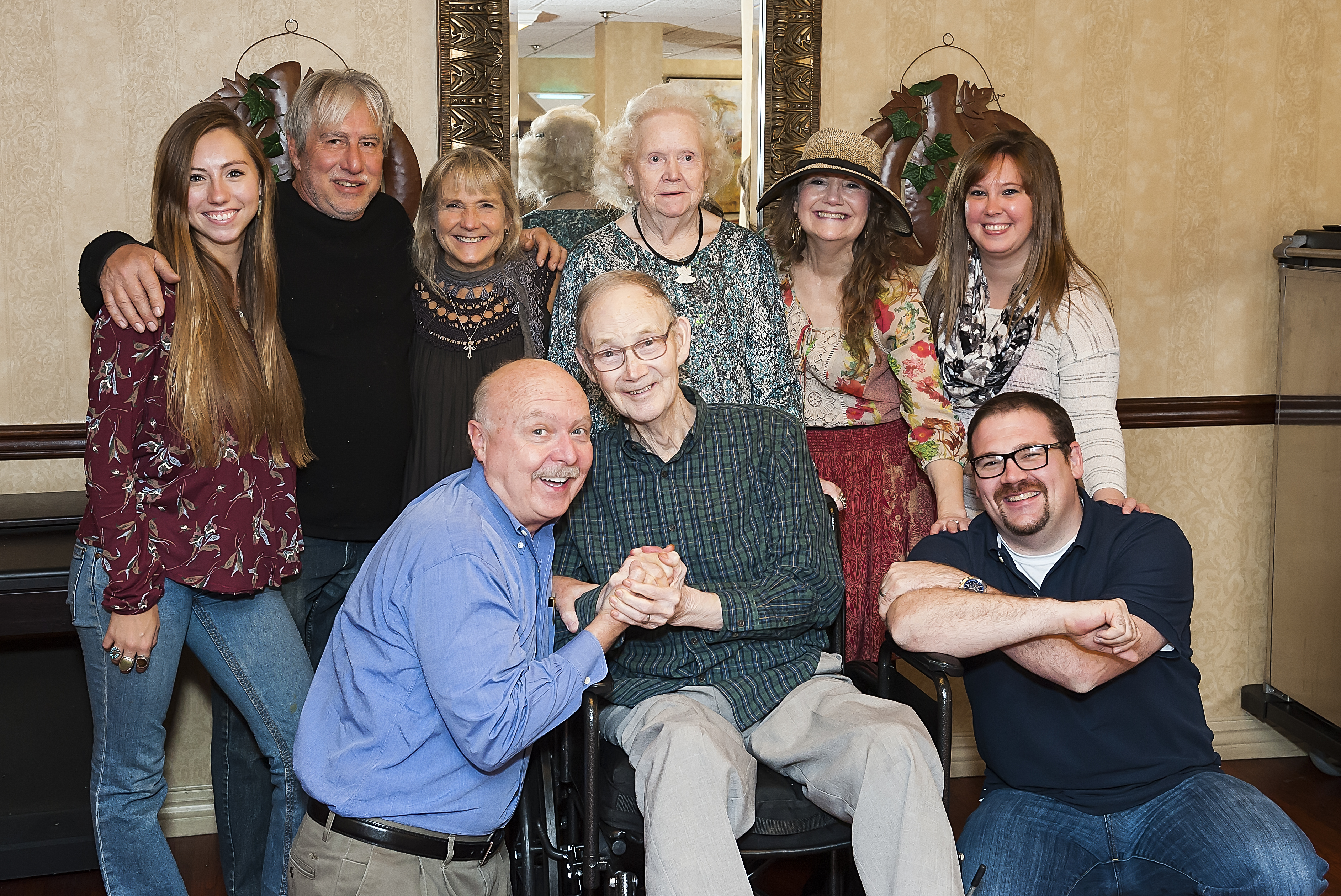 Kurt had set up a tripod to get a group shot of all of us on that Thanksgiving day. And I am so grateful that he did. The photo shows daddy holding hands with Kurt (who he adored) and showing his great joy and happiness for just being with his family. On December 3, a few days later he died with a sudden heart attack, and I sat beside his bed at the rehab center touching him repeatedly and trying to say goodbye.