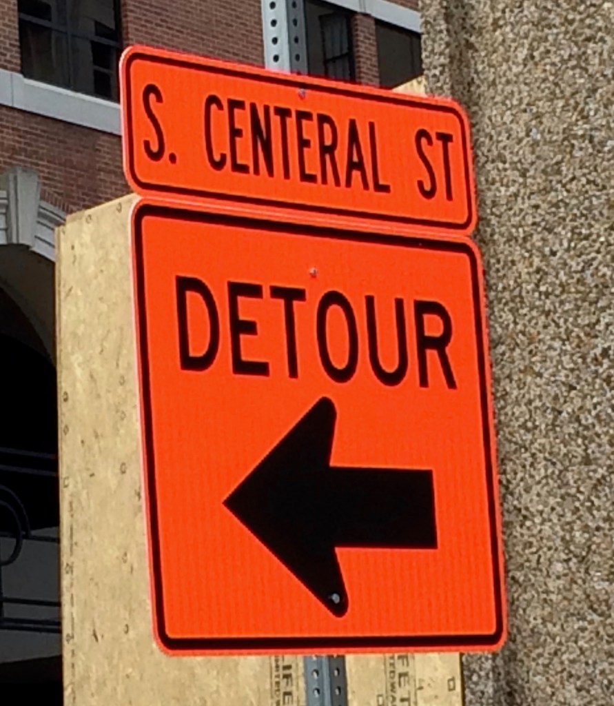 Spelling was not one of the strong points for the city government official who commissioned this sign. It is centeral to our detour mission to move you on your way, Knoxville drivers.