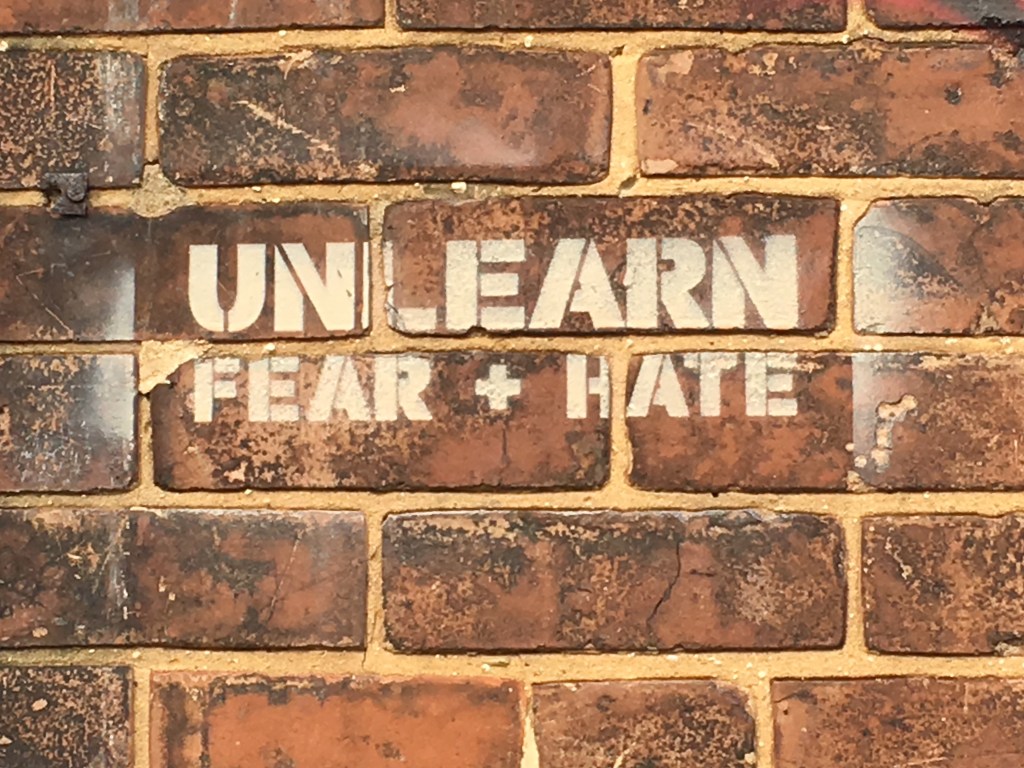 This sign is, perhaps, even more relevant to our present day struggles in June 2020 than it was in 2017. However, the need to unlearn fear and hate has probably been an issue throughout human history. The antidote? Hope and love, two emotions that have been in short supply in our public discourse this year.