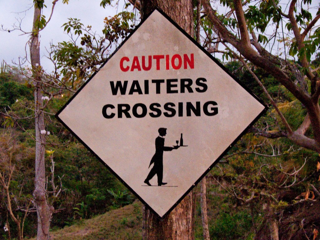 Costa Rica is a country of great natural beauty that is known for protecting its wildlife and ecological diversity. It also takes seriously its responsibility to keep its waiters safe when they are crossing a road to serve food. Yes, this sign really was posted beside a road in Costa Rica.