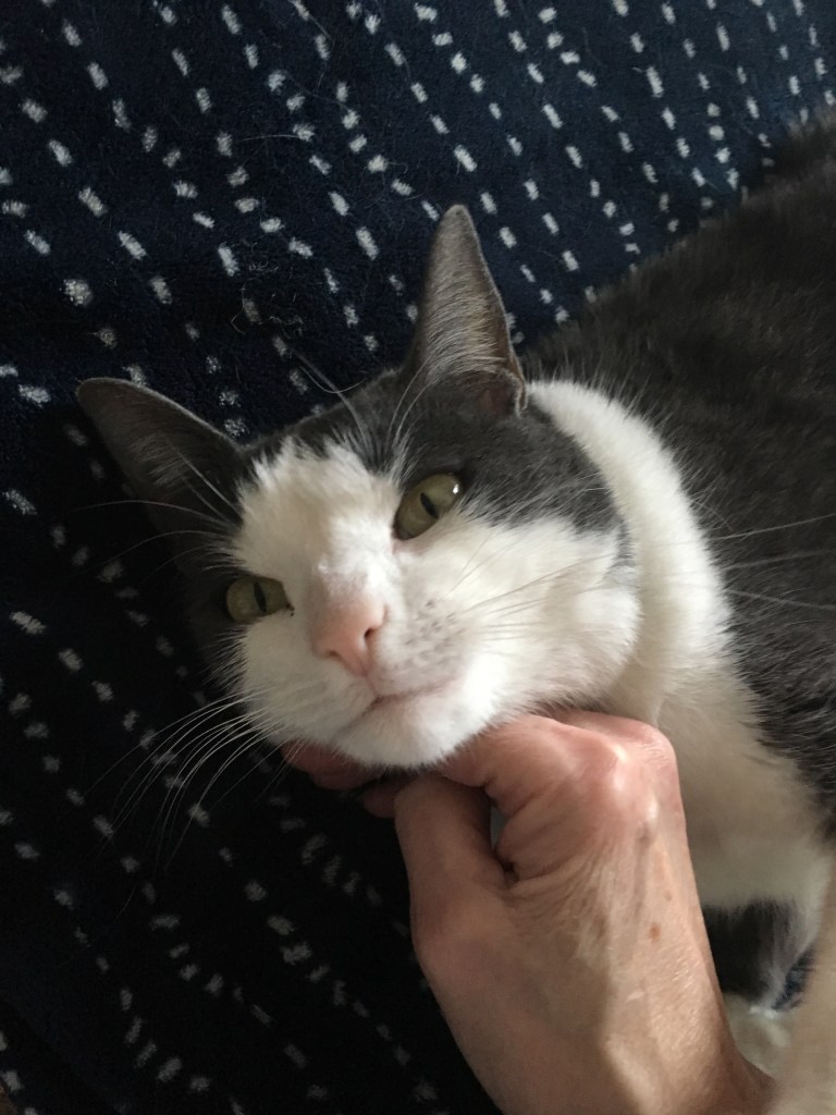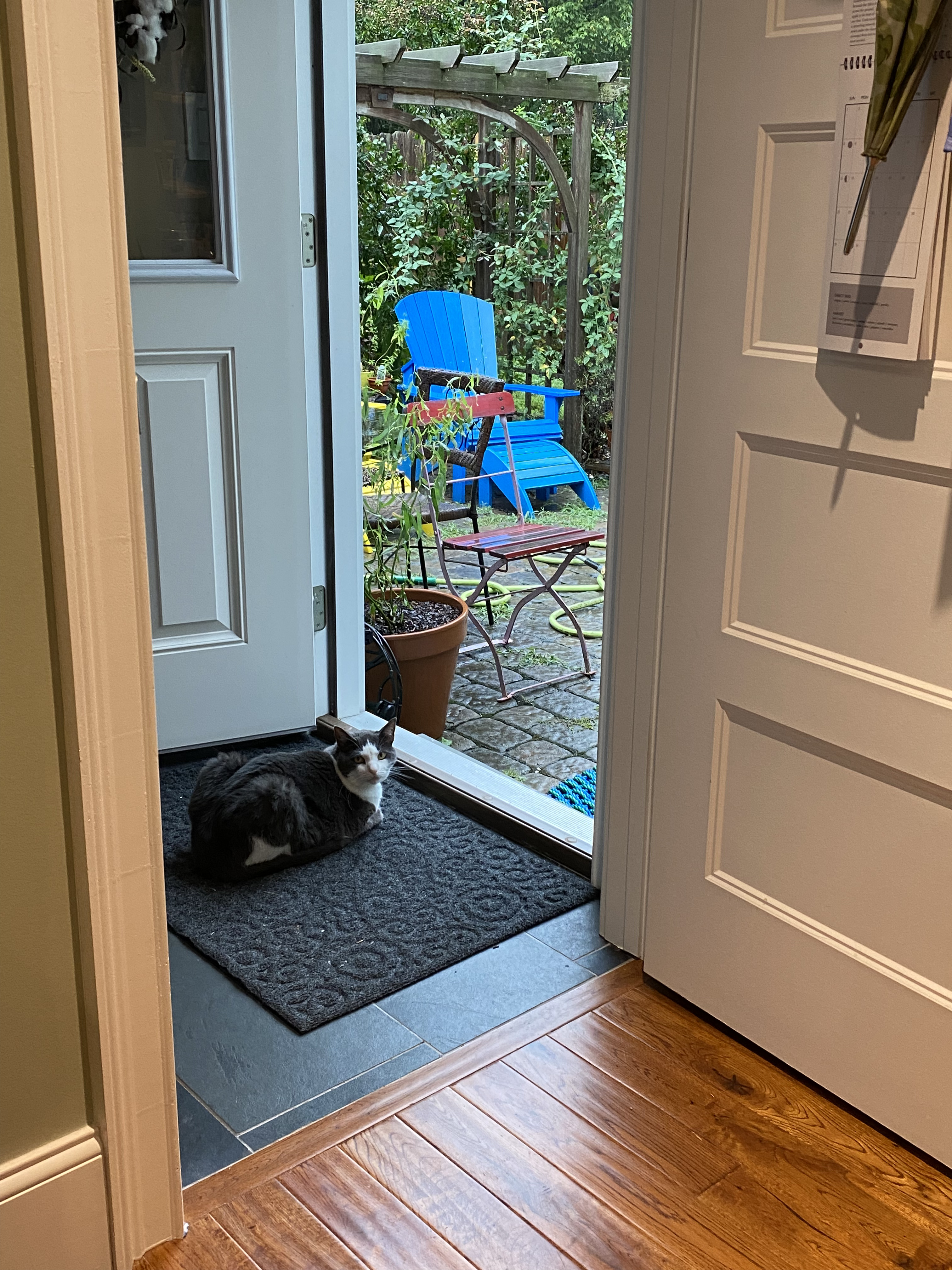 We learned that she is called a tuxedo cat which means she has markings as if she is wearing a tuxedo. Such cats are highly intelligent and quirky. That describes Cadi very well because she falls into regular habits, then one day decides to do something entirely different. But in the main, Cadi is the happiest of cats, acting more like a lap dog indoors and just wanting to be near us.