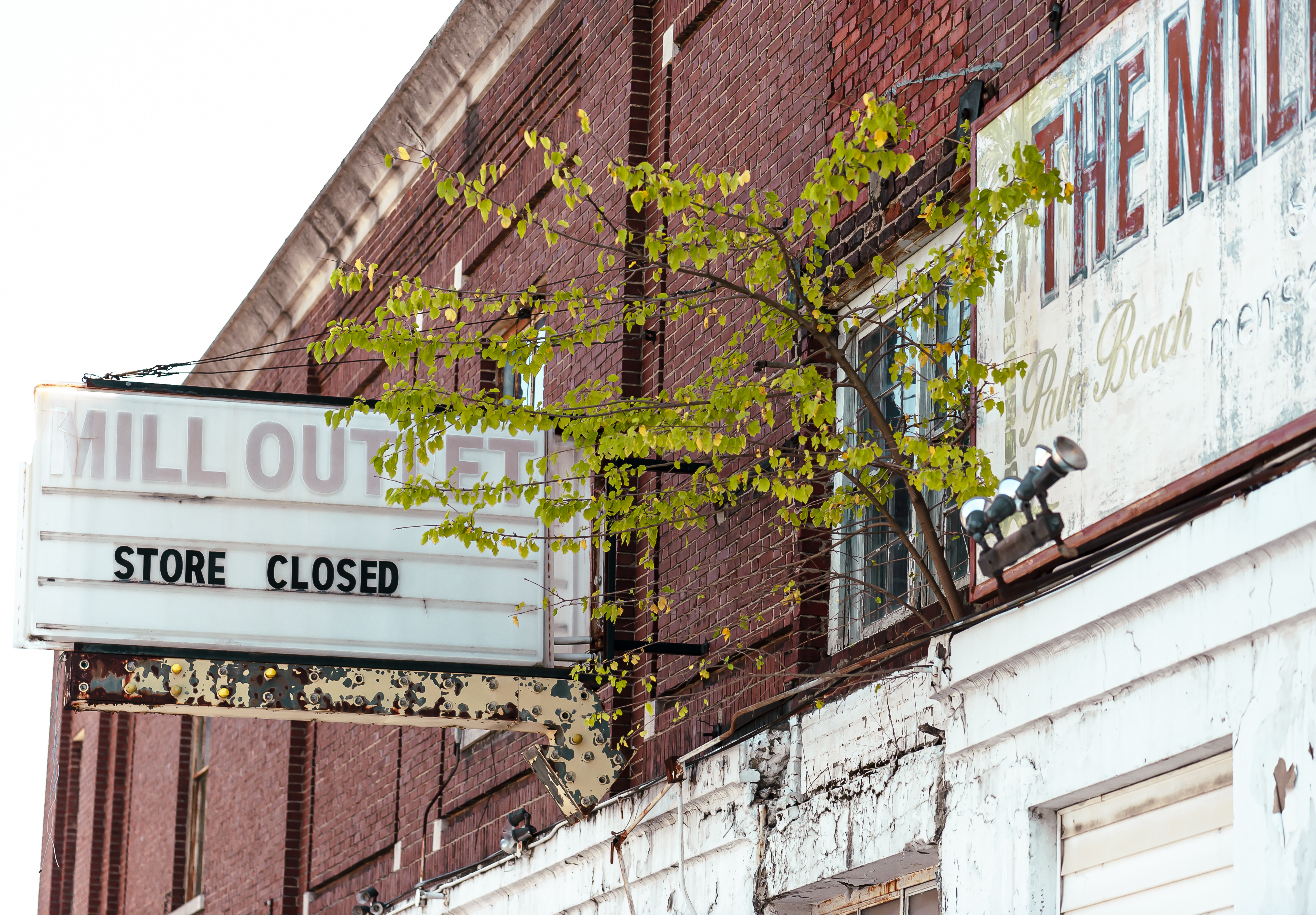 How amazing it is to experience the sheer serendipity of discovering a plant magically growing on its own without human plan, intervention, or support in such an inhospitable place as a crack in a driveway or out of a small hole in an abandoned building. The tree shown below has its roots in the darkness of the former Palm Beach Mill Outlet building on Baxter Avenue here in Knoxville, yet it is reaching for the light through a tiny space between the bricks of a building that has been closed for decades. How does it get enough water? How did it begin to grow in a building where you would normally not find soil? It is remarkable that the owners of this building have not cut the tree down.